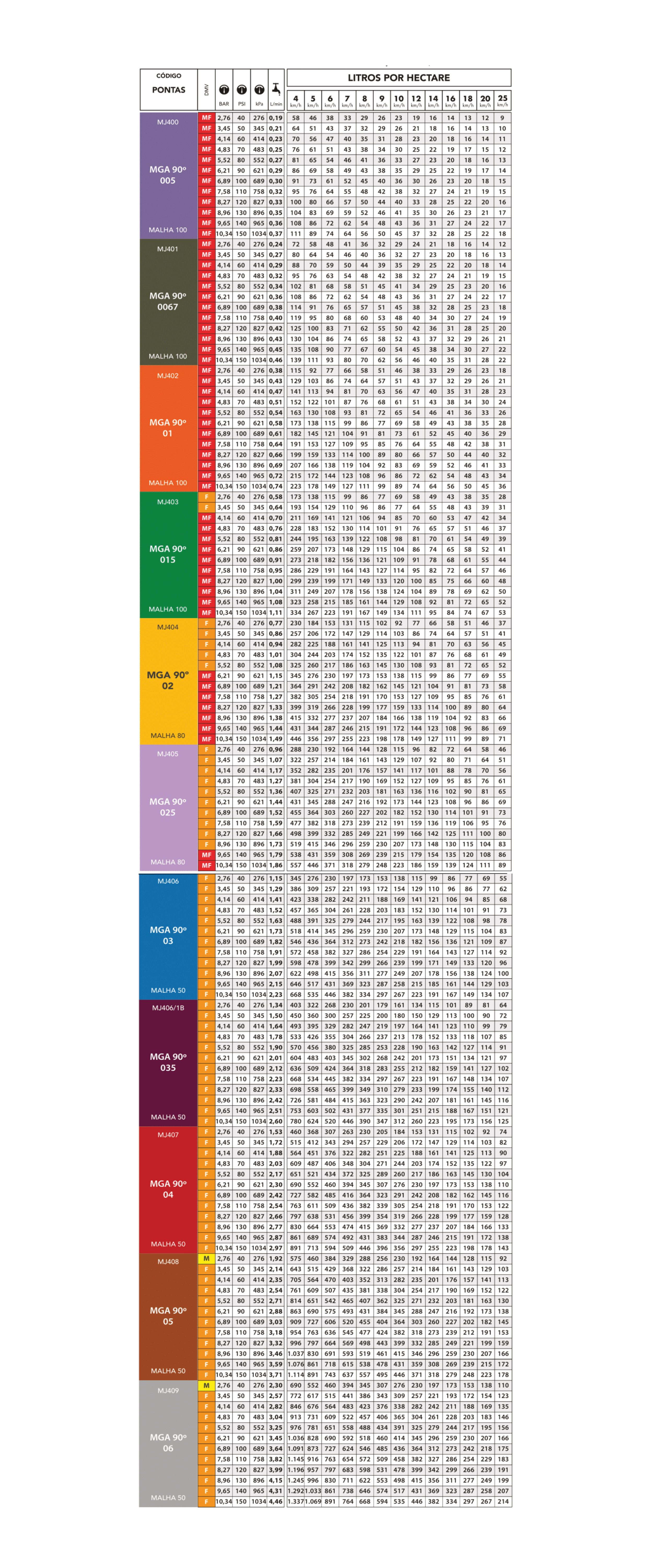 MGA to ceramiczny rozpylacz o pustym stożku oraz kątach 90°, 60° i 40° dających równomierne pokrycie na całej wysokości drzew i krzewów. Jego budowa zapewnia doskonałe rozprowadzenie cieczy. Ceramika zastosowana w dyszy zdecydowanie wydłuża jej żywotność.